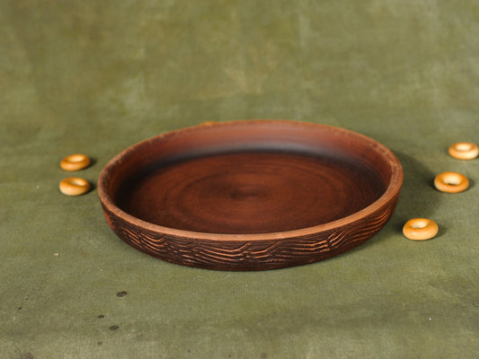 Plate of red clay, dish, brown plate, dish, Pottery, ceramic, handmade, 8 inch